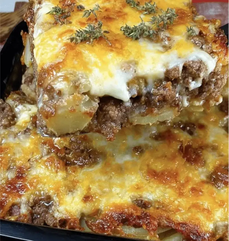 The layers of seasoned beef, tender potatoes, creamy sauce, and golden cheese make it a hearty and satisfying meal that pleases both kids and adults alike. Whether you’re making dinner for your family or prepping for a busy week, this casserole has you covered.